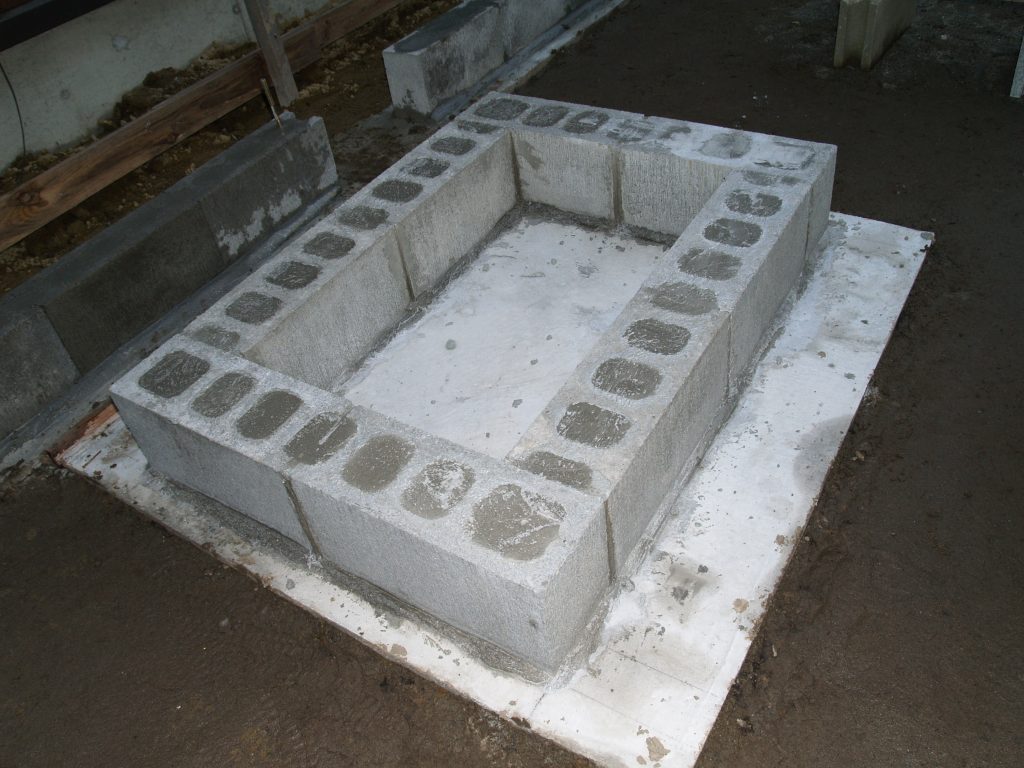 土台となるコンクリートブロックをモルタルで固めました。