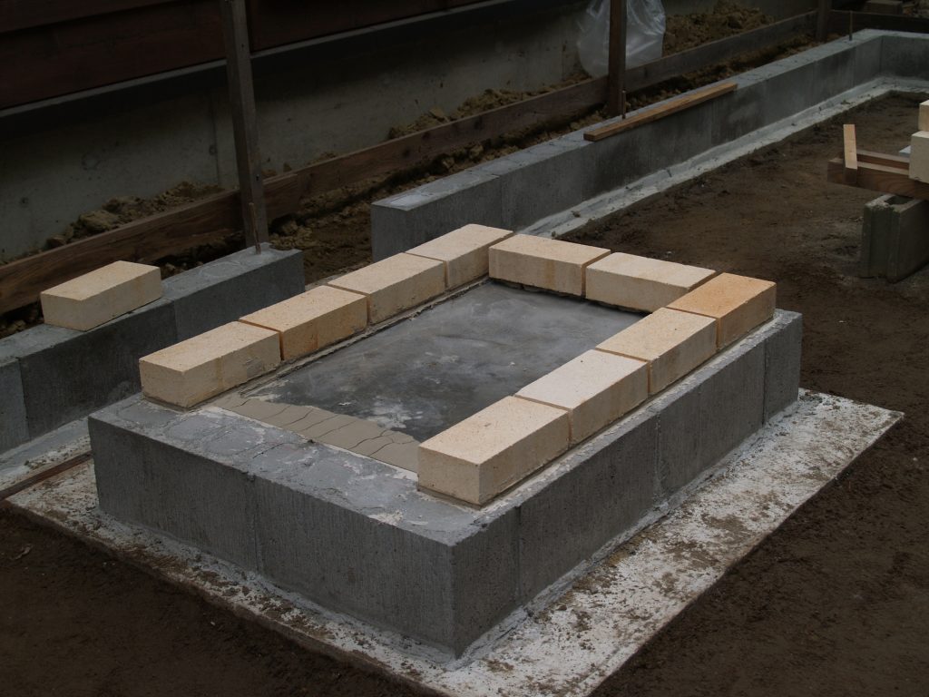 1段目の耐火煉瓦を耐火モルタルで接着し積んだところです。