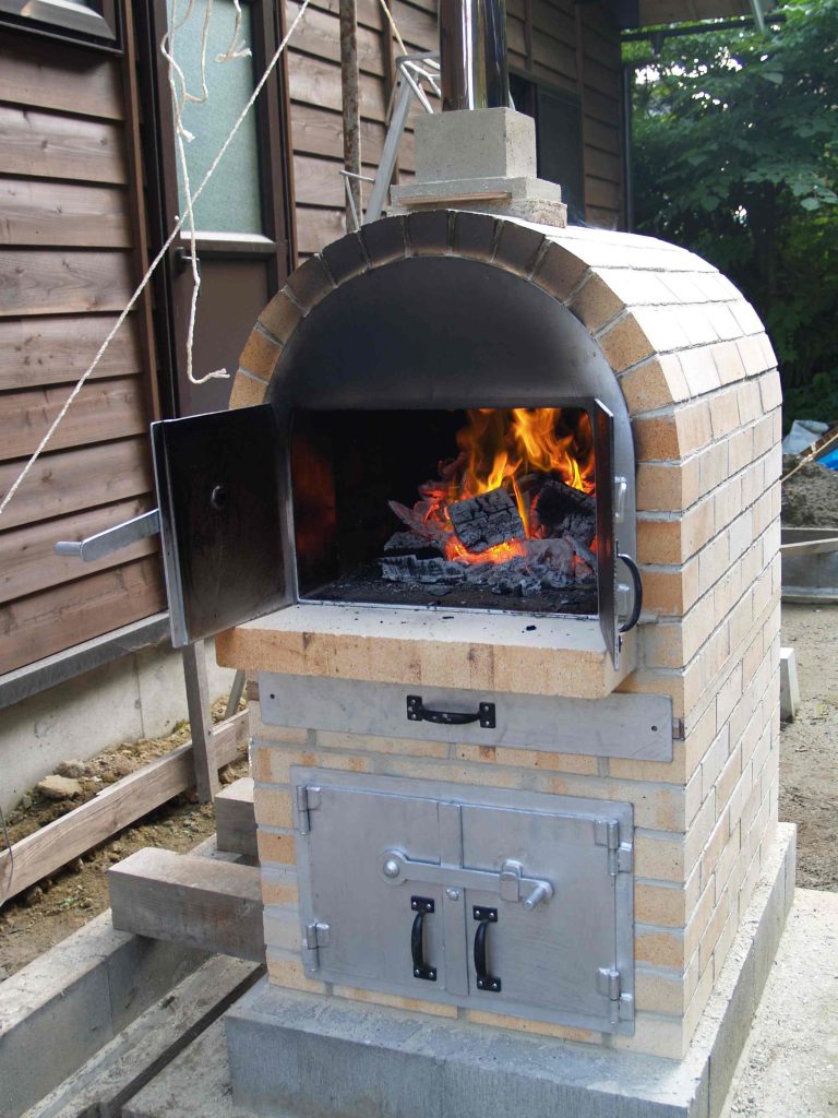 (この石窯に使用した扉とその枠は、近くの鉄工所に特注したものです。単品特注ですから、それなりの価格です)