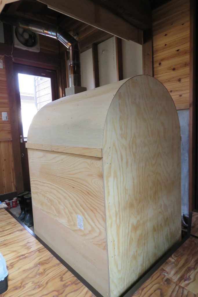 断熱完成後、火入れをしましたが、コンパネに触っても全然熱くないです。