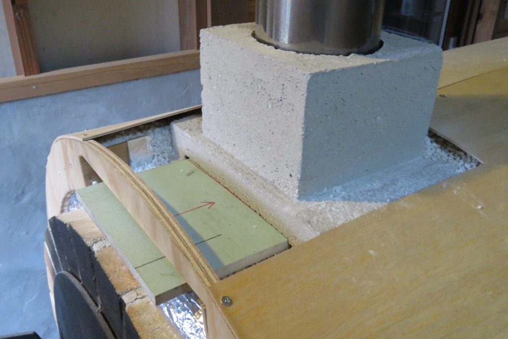そこで、少しでも燃焼効率を上げるため、煙突取付穴近くに「垂れ壁」を作り、煙突から排熱を少しでもブロックできるようにしました。